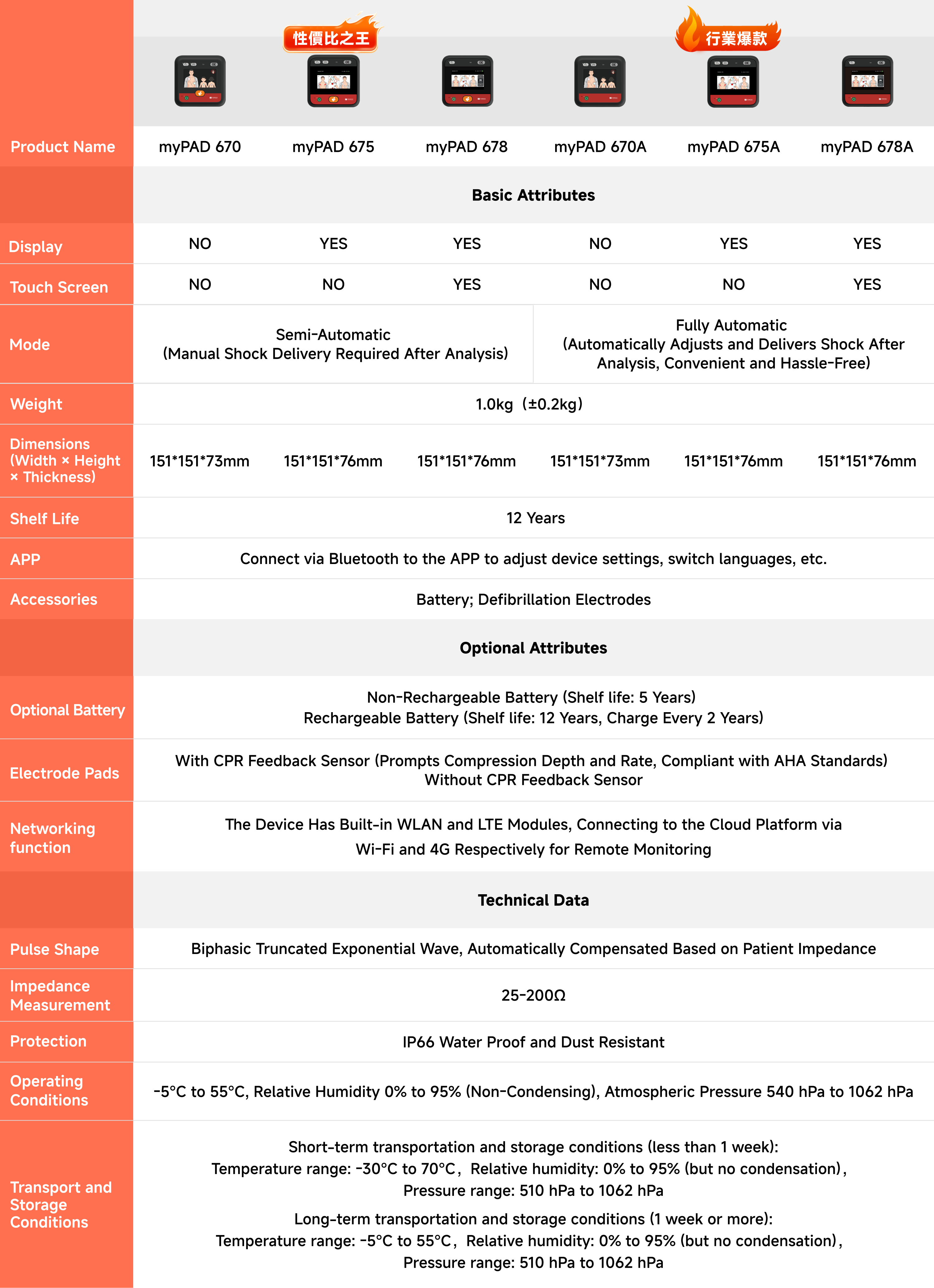 Detailed Specifications of the HeartSave myPAD-675A