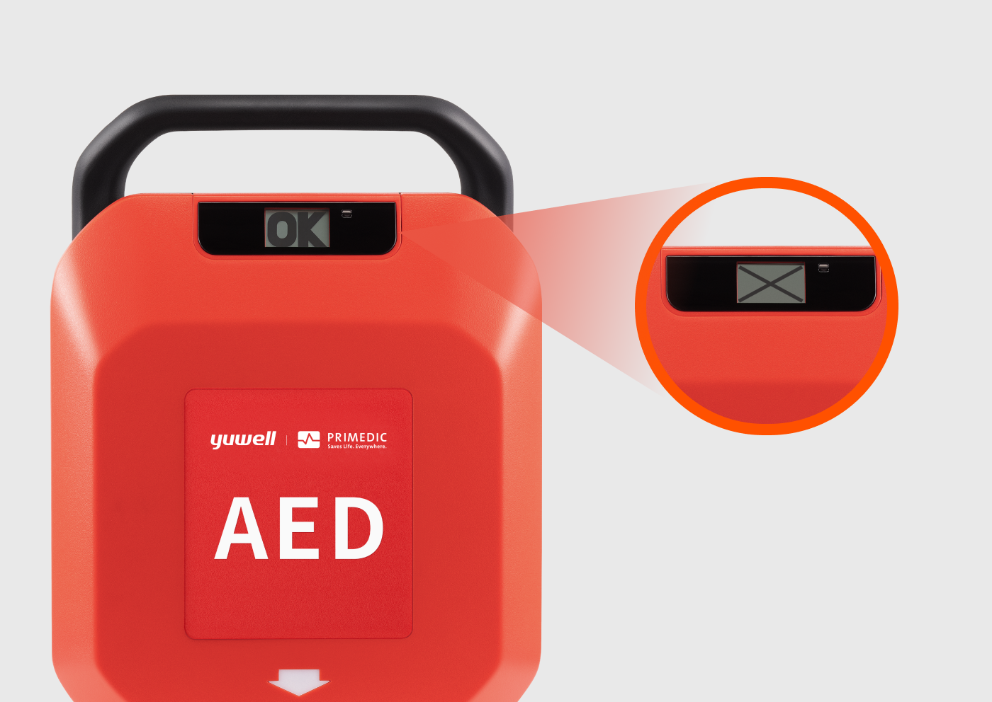 您好!AED 顯示 “X” 或紅燈閃爍屬於故障警報信號,需按以下處理: