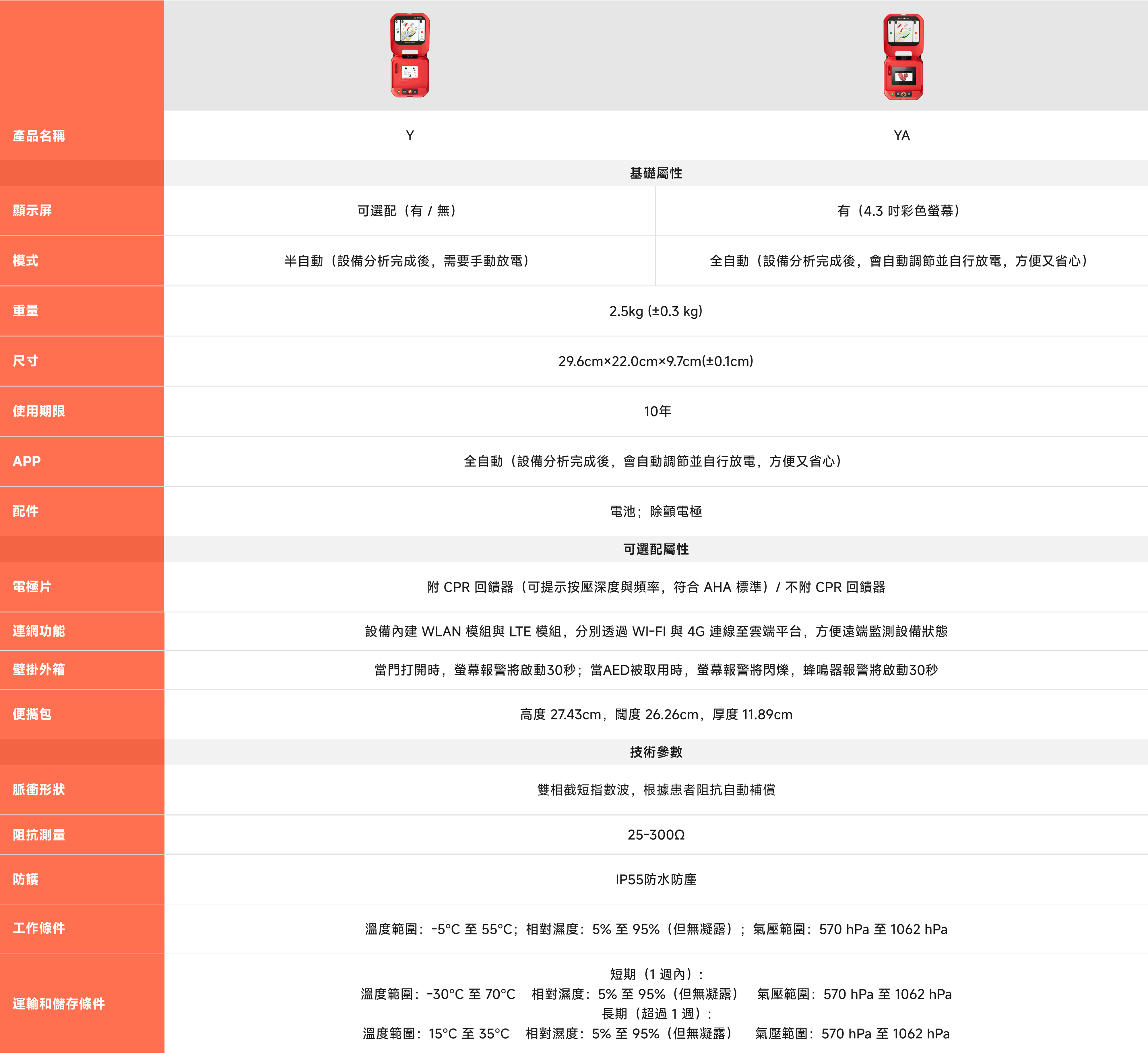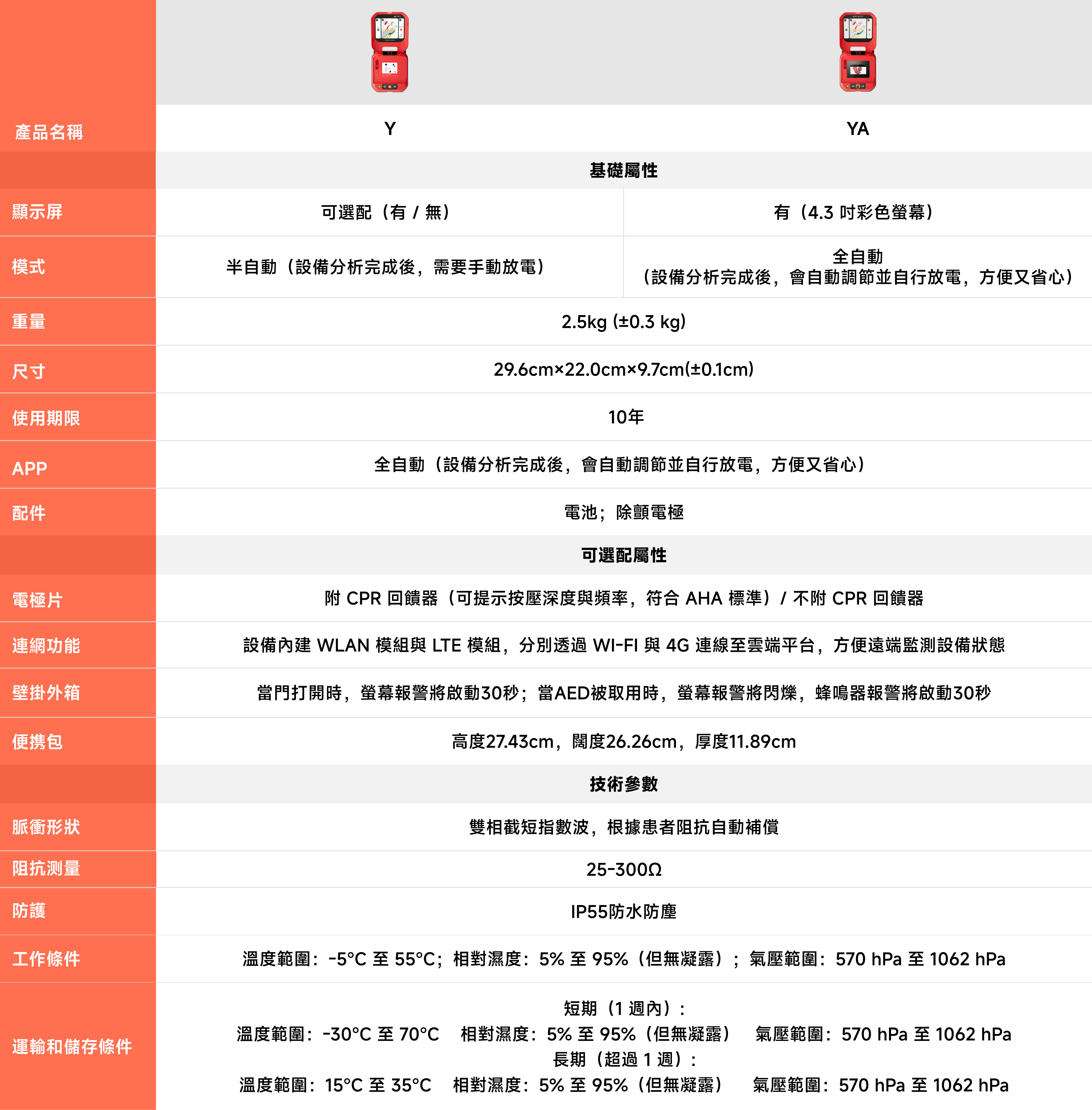 PRIMEDIC AED Y/YA系列與其他品牌對比